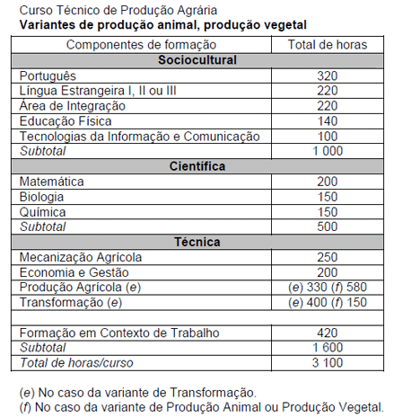 TÉCNICO DE PRODUÇÃO AGRÁRIA VARIANTES: PRODUÇÃO ANIMAL E PRODUÇÃO VEGETAL