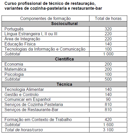 TÉCNICO DE RESTAURAÇÃO VARIANTES: COZINHA-PASTELARIA E RESTAURANTE-BAR