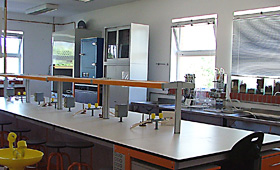 Encontra-se dotado de uma bancada central, na qual existem diversos blocos eléctricos autónomos e bicos de Bunsen, o que permite que em simultâneo 16 alunos realizem individualmente as suas experiência e práticas laboratoriais.