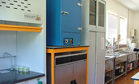 Por forma a garantir condições de segurança a professores e alunos o laboratório está equipado com uma Hotte que permite a manipulação de reagentes químicos perigosos, assim como a realização de algumas experiências de risco moderado, em contexto de aula.
